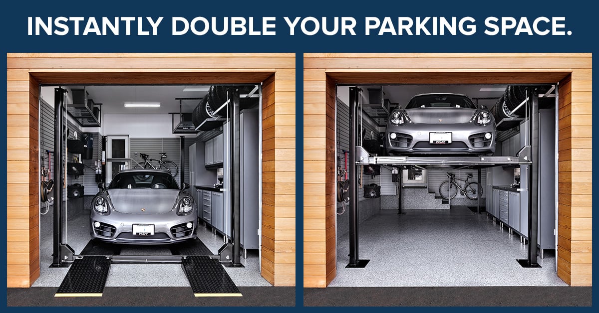 Whether you’re looking to increase the storage space in your garage or store a summer vehicle during those long winter days, a car lift provides a great way to reimagine your garage space. To determine if installing a car lift is right for you, here are answers to some common car lift questions. How much space do I need? A car lift will optimize any space, so don’t fret if you’re concerned that your garage is too small. The car lift itself will fit into one bay space and it is optimal to have 11-12 feet clearance height. Garage Living can also modify how your garage doors open to accommodate a car lift. The door is modified by extending the garage door tracks to the ceiling and replacing the ceiling-mounted motor with a side-mounted jack shaft operator. How much weight can a car lift hold? The 8,000 lbs. standard car lift supports sedans, small vehicles, and sports cars, while the 8,000 lbs. long car lift also supports mid-size SUVs and pickup trucks. The 9000 lbs. standard car lift is the perfect choice for large SUVs and pickup trucks. How does Garage Living install the car lift? The process generally takes half a day. Our team of 2-4 installers will arrive on-site to install the lift. The car lift does not have to be anchored to function effectively, but it can be anchored if you prefer. Once the lift is installed, we’ll test it to make sure everything is working correctly and safely. It runs on a 110v outlet, raises electrically, and lowers hydraulically. After the car lift is installed, our team will teach you how to use the lift, make sure you feel comfortable with it, and answer any of your questions. Is a car lift safe? Lifts installed by Garage Living use locking pins in each post with a secondary locking mechanism. Unlike many other car lift installers, all Garage Living installers are ANSI certified to ensure customer safety. Where can I learn more? Our team can help you determine if a car lift is the right solution for your space. A team member at your local Garage Living location can tell you over the phone whether or not your garage can fit a car lift. We’ll only need to know a few measurements of your space to give you an answer. If your garage can fit a car lift and you’re looking to move forward with adding one or having any other garage upgrades done, schedule a free design consultation with us.