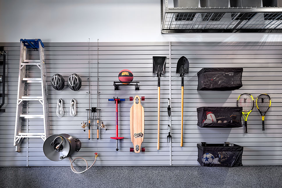 - Garage wall storage: Our premium and versatile PVC slatwall panels take advantage of unused wall space to keep items off the floor. With over 40 different garage storage accessories, the options for creating a clean, finished look to your space are endless.