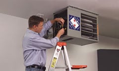 While this type of garage heater won’t heat your entire space, it does allow you to comfortably use areas of your garage during the fall and winter.